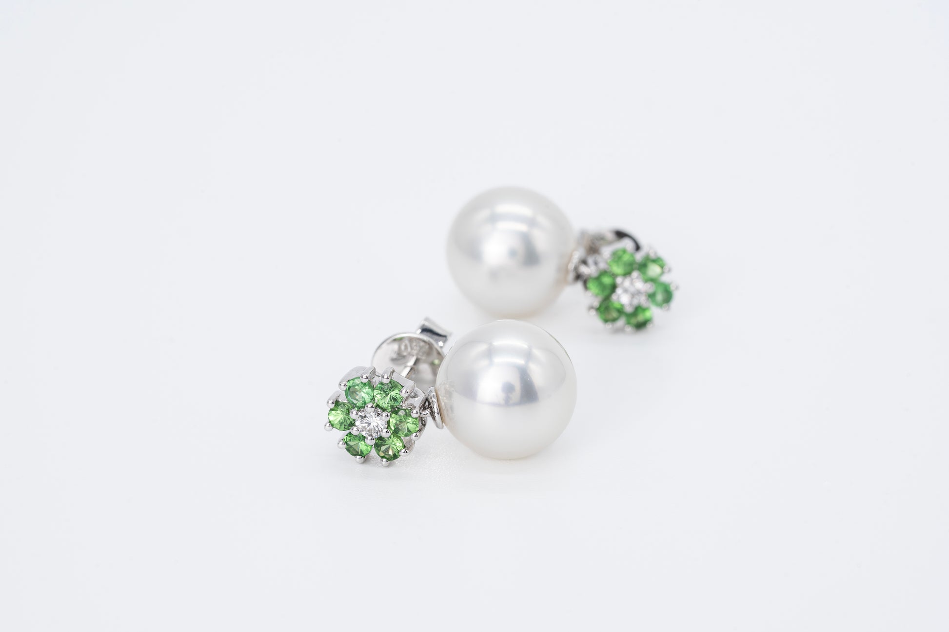 Fresh, radiant, and full of contrast—The Aurette pairs luminous South Sea pearls with vivid green garnets and sparkling natural diamonds. Crafted in 18CT white gold, these earrings bring a touch of modern vibrancy to timeless elegance.