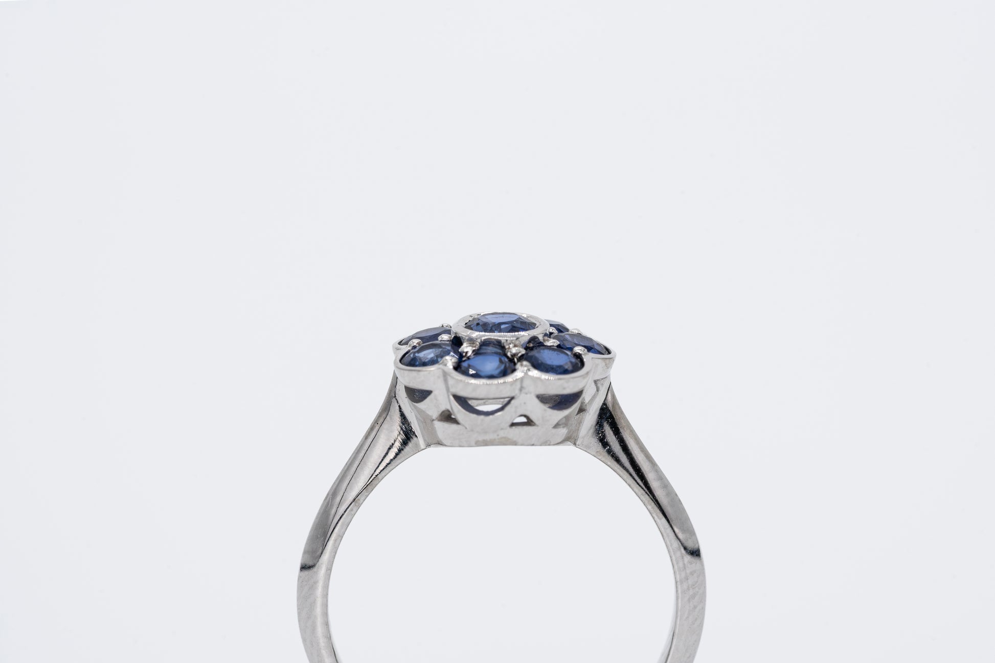 Crafted in 18CT white gold, The Fiora celebrates the elegance of symmetry with eight deep blue sapphires arranged in a delicate floral cluster. Each gemstone catches the light like morning dew, coming together to form a radiant blossom — a symbol of growth, grace, and enduring charm.