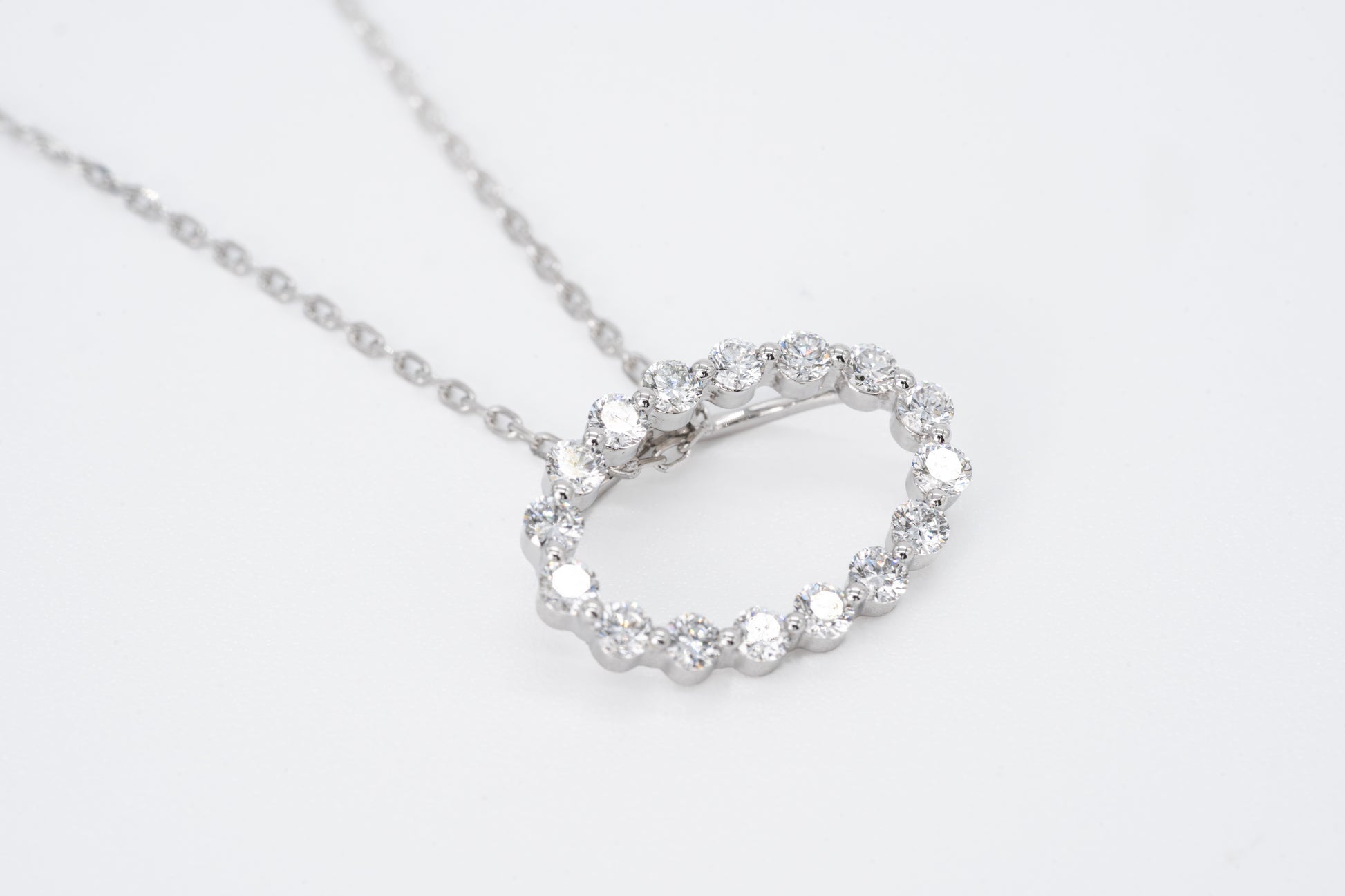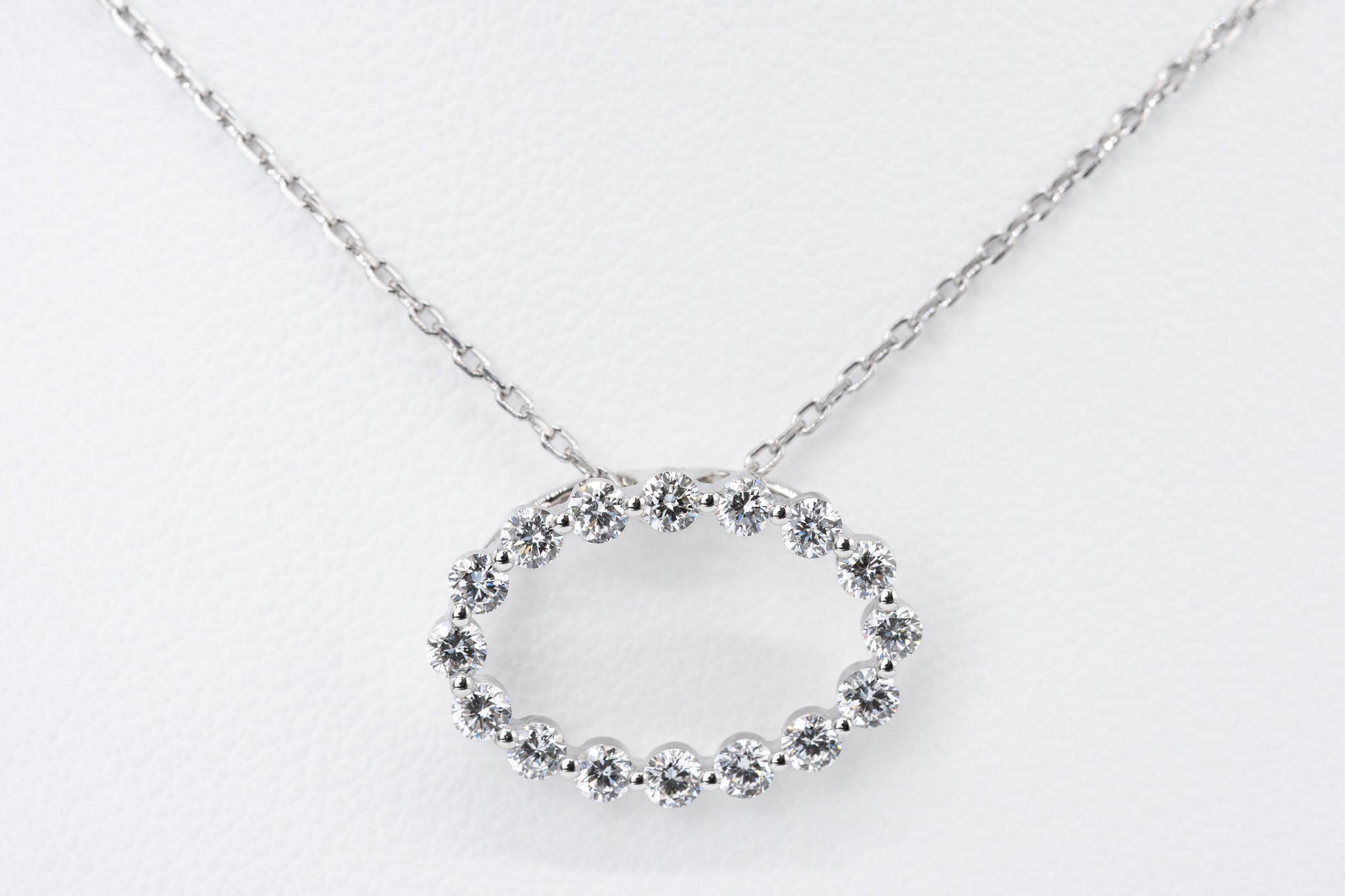 Crafted in platinum (PT950), The Isola necklace showcases sixteen lab-grown diamonds — delicately set in a continuous oval design totalling 0.57CT. Each stone catches the light effortlessly, creating an understated radiance that speaks of balance and elegance.